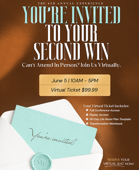 Your virtual ticket includes full conference access, replay access, your 90 Day Life Reset Plan Template, and Transformation Workbook.